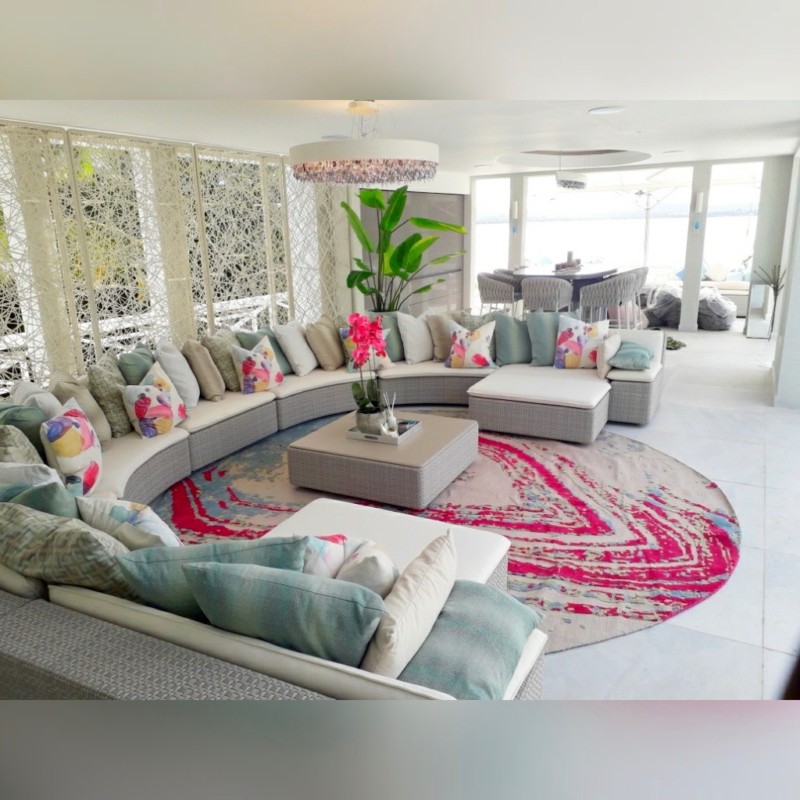 With feature lighting and sofas from the finest brands in Europe, combined with quality soft furnishings made and transported from the UK and hand made rugs in Caribbean colours from the Indian continent.
